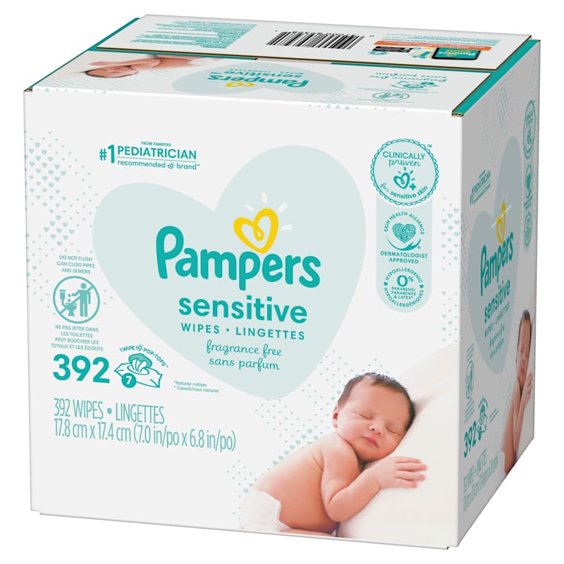 Amazon Com Baby Wipes Pampers Sensitive Water Based Baby Diaper Wipes Hypoallergenic And Unscented 7 Pop Top Packs 504 Count Total Wipes Packaging May Vary Health Household